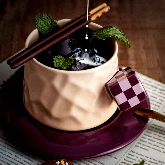 Креативна чашка з блюдцем Elegant Cube — це поєднання сучасної геометрії та витонченості. Унікальна форма з «зім’ятою» текстурою корпусу виглядає оригінально та додає стильного акценту у сервіровку. Кубічна ручка з яскравим шаховим малюнком робить кожен виріб особливим.
