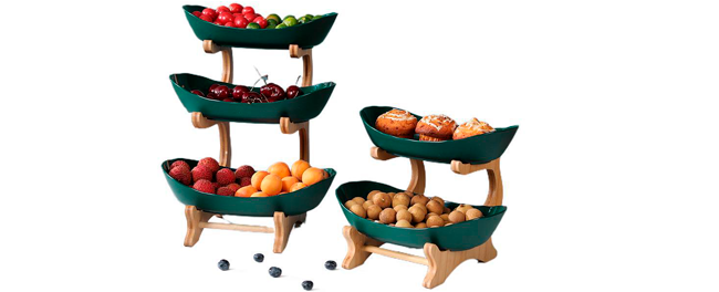 Багатоярусна конструкція дозволяє ефективно організувати простір на кухні або столі. Вона підходить не тільки для зберігання фруктів, але й для подачі випічки, закусок, овочів та інших продуктів. Це робить тарілку універсальним інструментом для сервірування та прикрашання столу під час святкових заходів чи сімейних вечерь.
